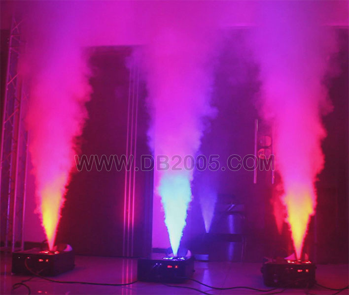 The Powerful fog output effect with LED colour mixing. A dry even blast of fog is produced and is propelled into the air emulating a CO2 jet effects, suitable for DJ show, party and any kind of events.